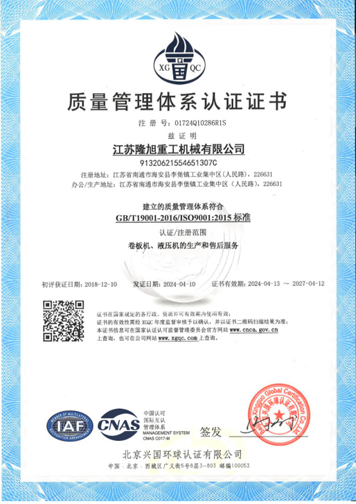 質(zhì)量管理體系認(rèn)證證書